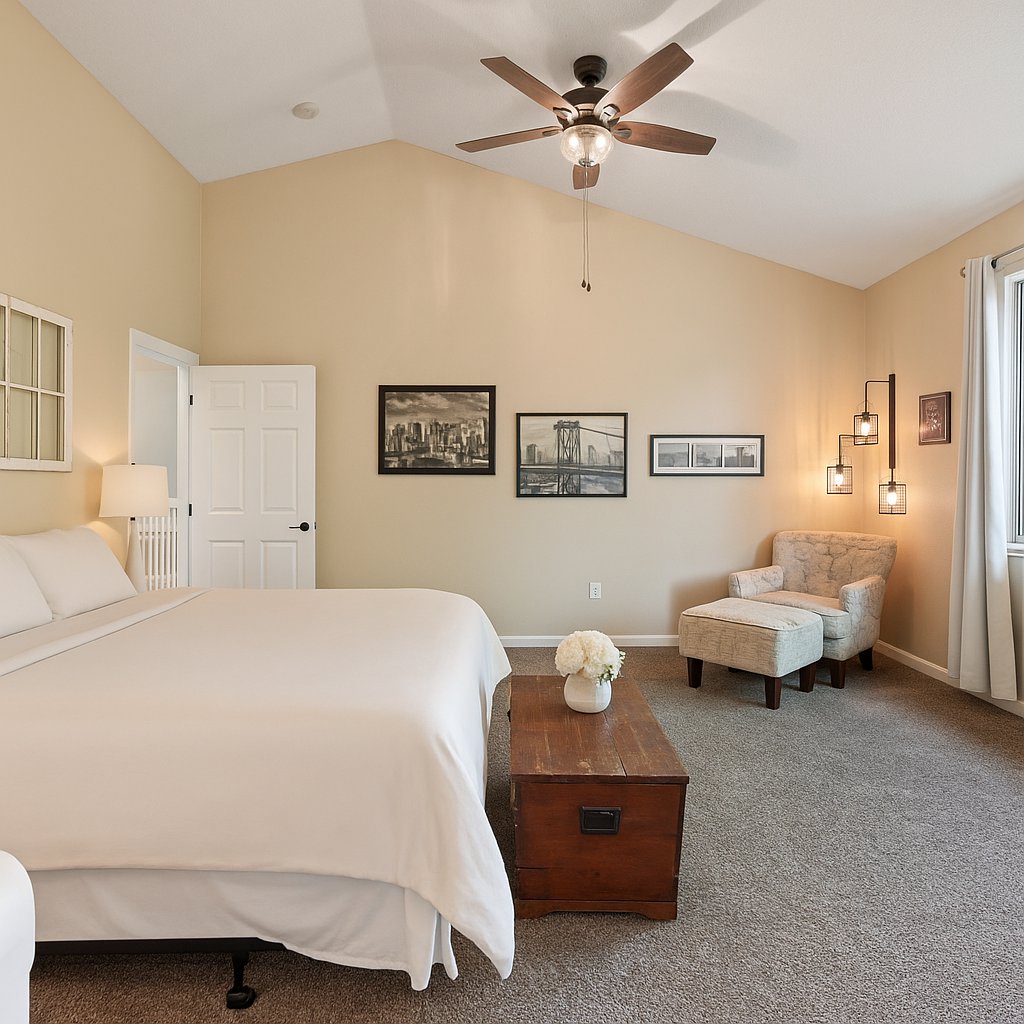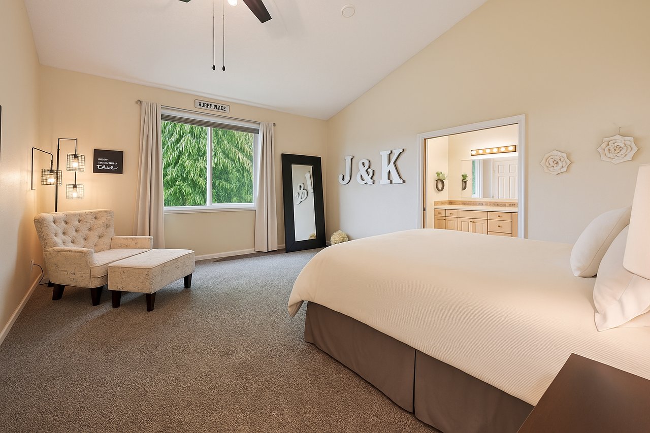 On the main floor you’ll find a spacious primary suite with vaulted ceilings, a generous walk-in closet, and an ensuite bathroom providing a peaceful retreat at the end of the day. Nearby, the laundry room adds convenience to daily living. Two additional bedrooms and a full bathroom on this level offer flexibility for guests, office space, workout room, or whatever fits your lifestyle.