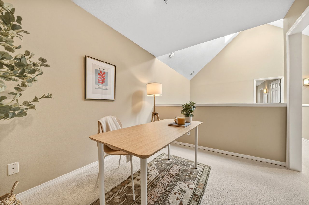 Between the two bedrooms, a lofted bonus area provides the perfect spot for a home office, reading nook, or creative workspace.