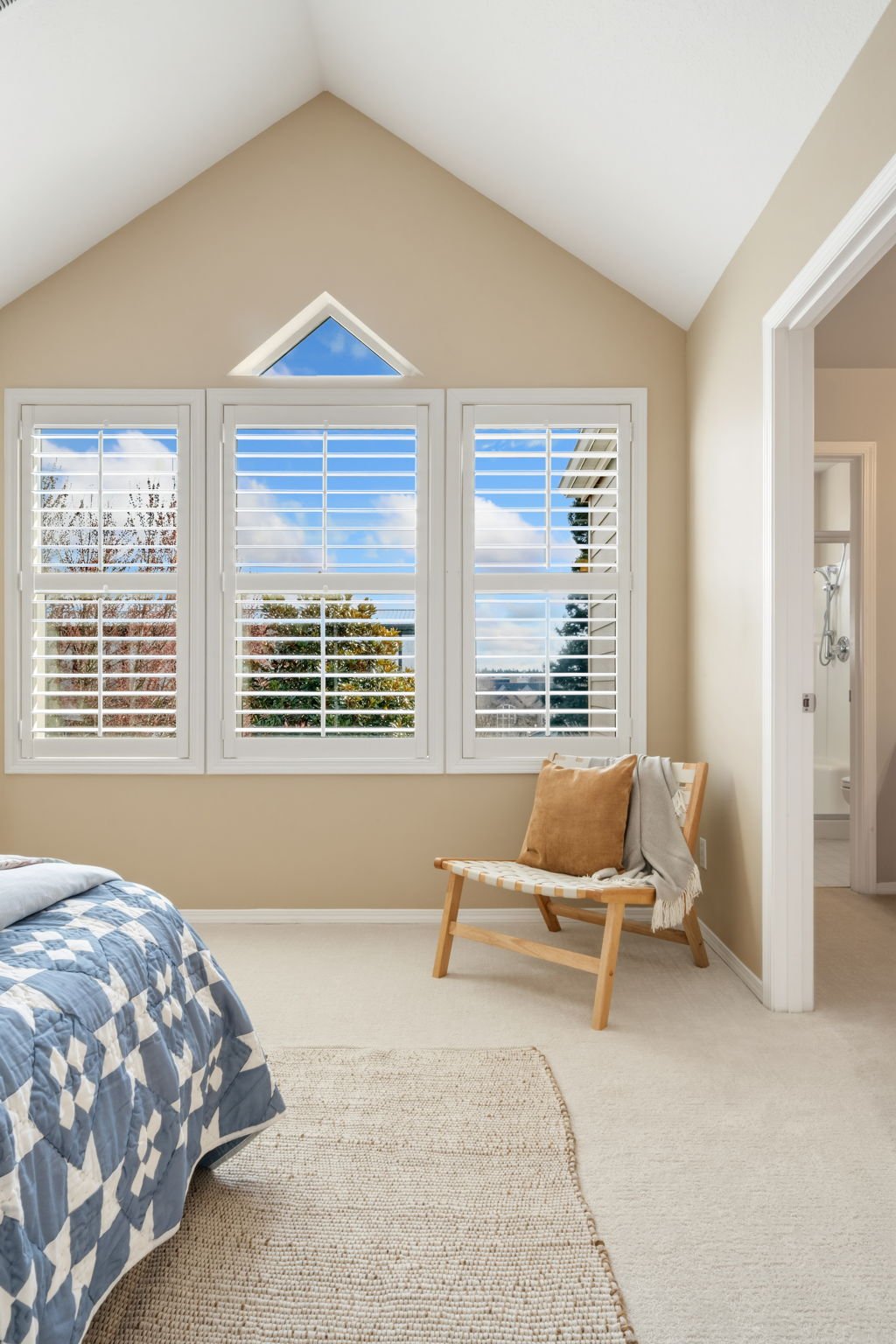 Upstairs, the home offers a layout that balances privacy with architectural interest.