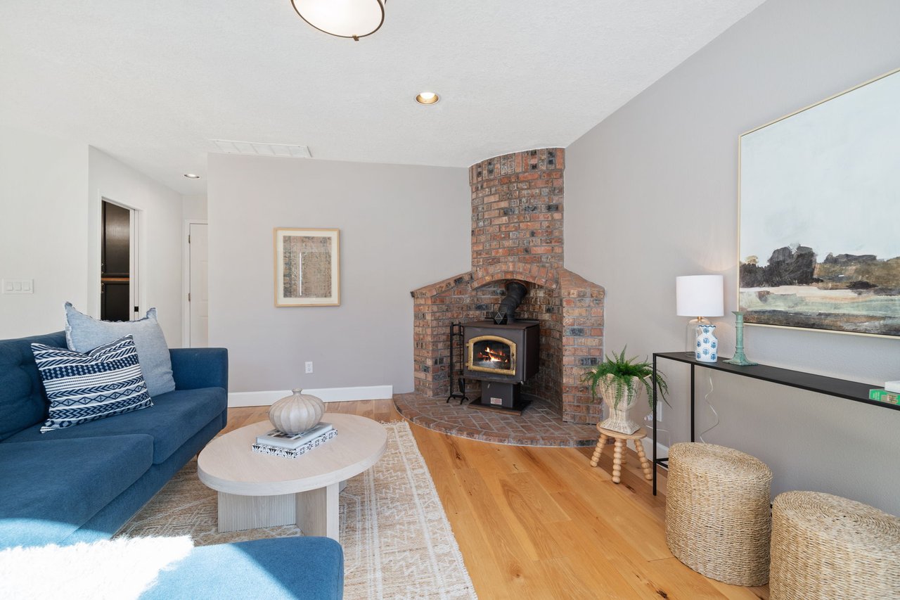 Open to the kitchen, the family room is anchored by a wood-burning stove with a brick hearth, adding warmth and character. Sliding doors lead directly to the backyard and deck, making indoor-outdoor living easy and intuitive. Whether it’s quiet mornings, cozy evenings by the fire, or casual summer dinners outside, this space was designed to be lived in and enjoyed.
